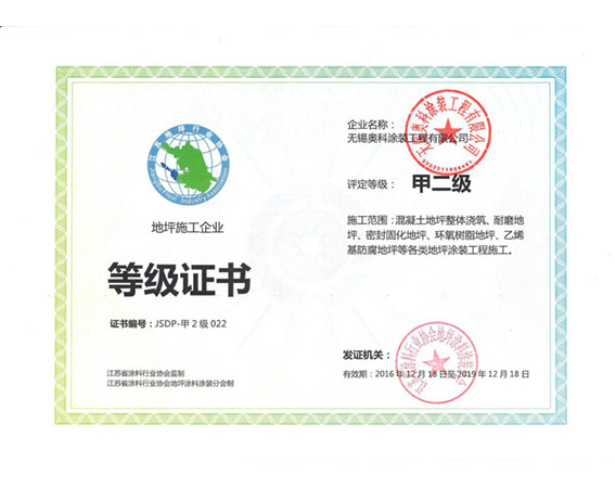 貳級專業(yè)施工資質(zhì),團隊人員結(jié)構年輕且富有創(chuàng)意,一直學習創(chuàng)新,并不斷引進優(yōu)質(zhì)施工設備 ,爭做地坪行業(yè)引領者